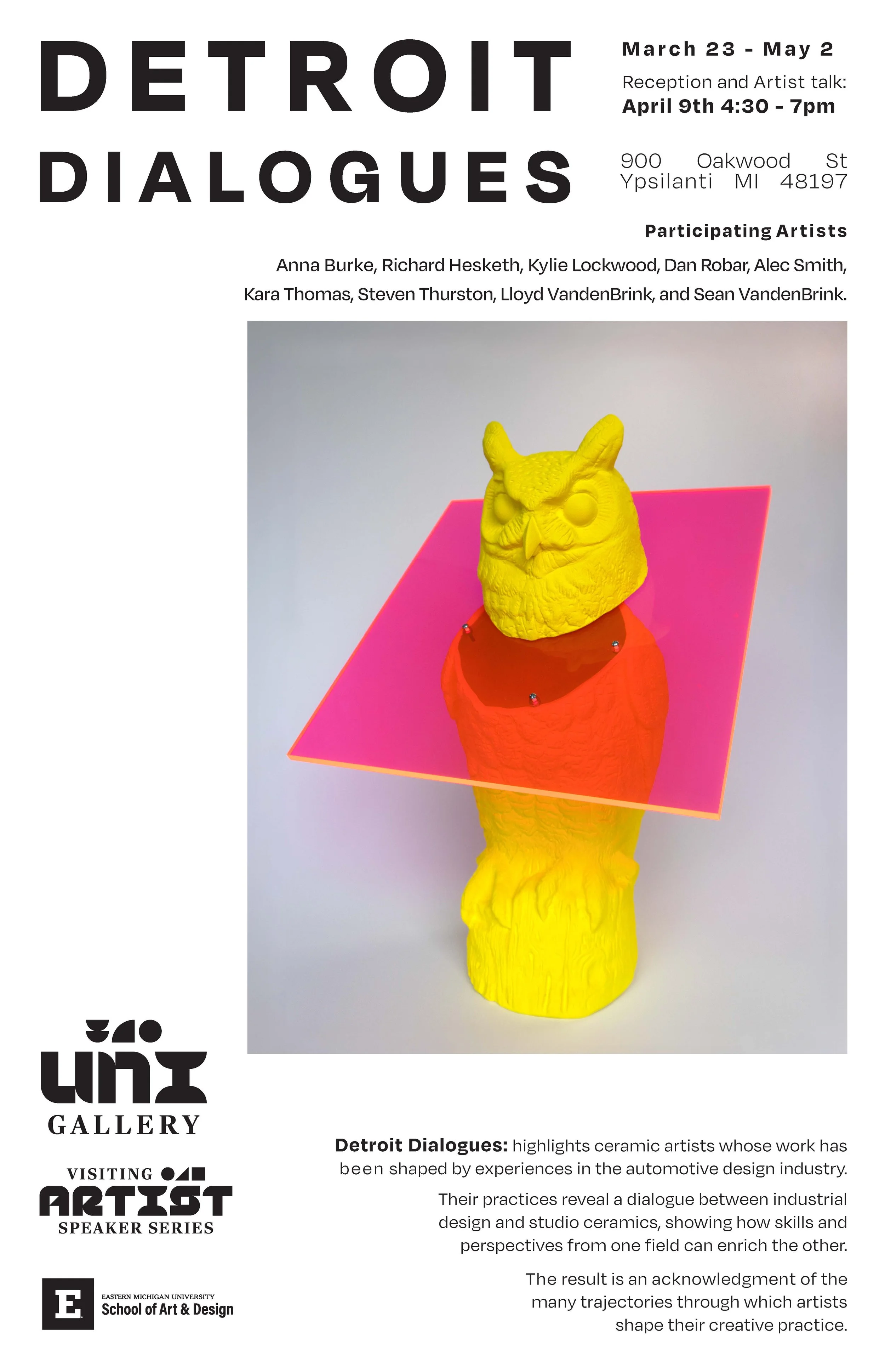 Detroit Dialogues (NCECA exhibit) March 23 to May 2 2026 - Reception is April 9th from 4:30pm to 7pm